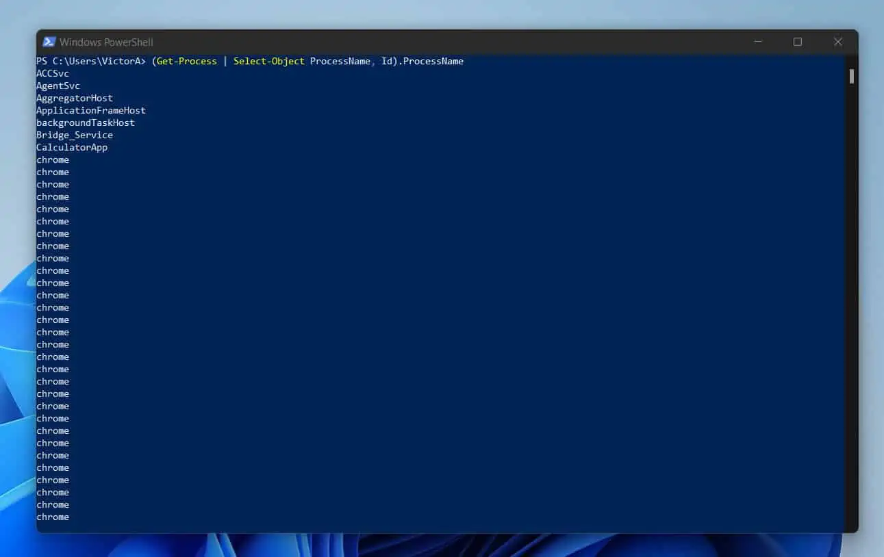 (Get-Process | Select-Object ProcessName, Id).ProcessName