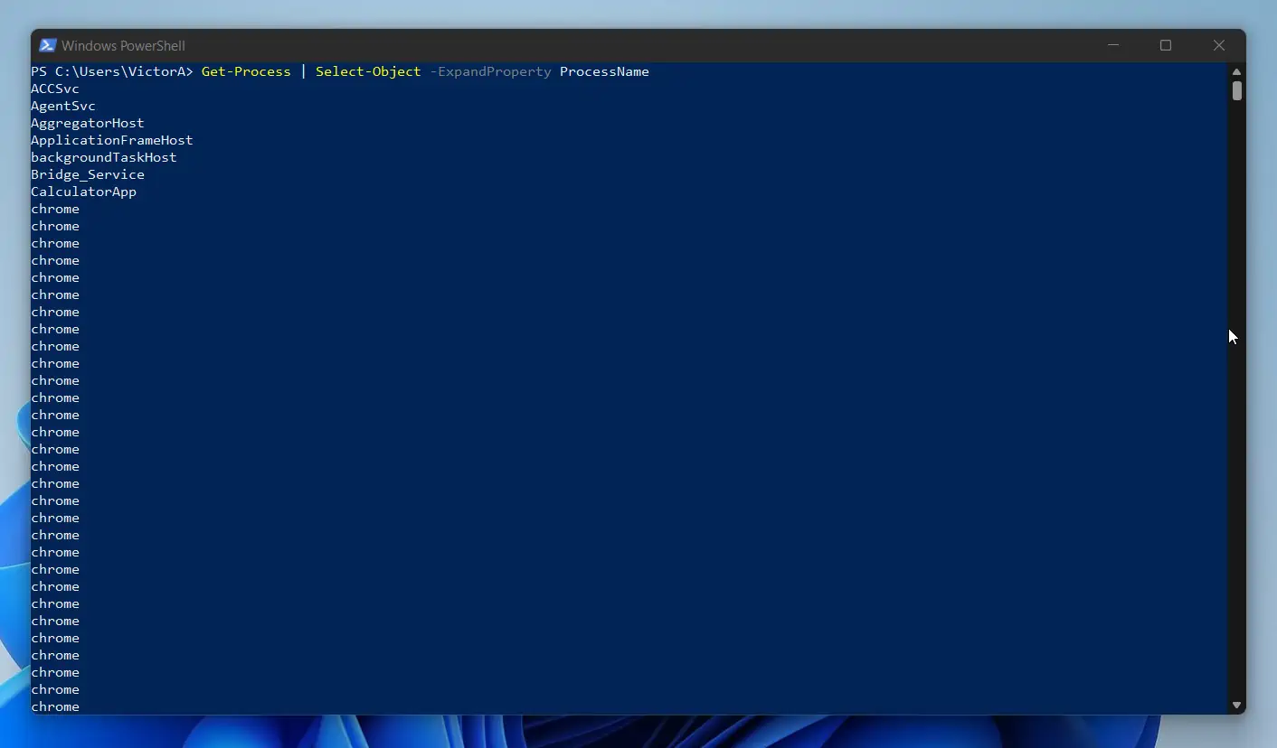 Get-Process | Select-Object -ExpandProperty ProcessName